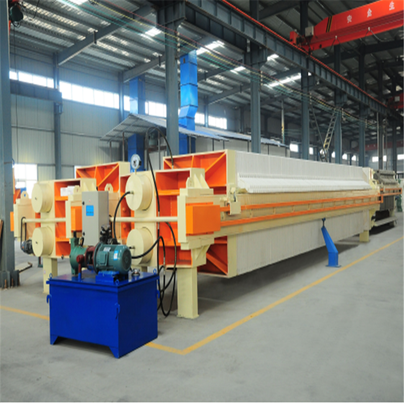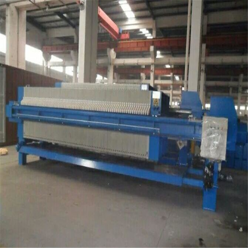板框压滤机主要由机架部分、过滤部分,拉板部分三大部分组成。机架部分由止推板、压紧板、油缸体和主梁等部件组成。板框式与厢式的不同之处主要体现在过滤部分滤板结构上。板框式压滤机由一块实心滤板与一块中空滤板交替组合成滤室。厢式压滤机由相同的实心滤板排列组成滤室,每块滤块都有凹进的两具表面,两块滤板压紧后组成滤室。滤板是压滤机的核心部件,滤板材质、形式及质量不同,会直接影响到产品质量。压滤机拉板部分可制作为自动及手动拉板卸料。